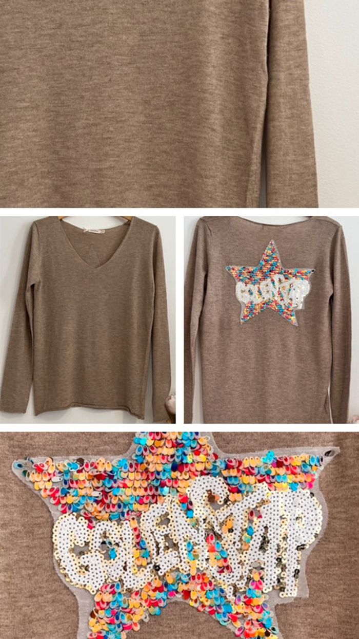 Pull léger dessins en sequins au dos 🤍🤍 - photo numéro 1