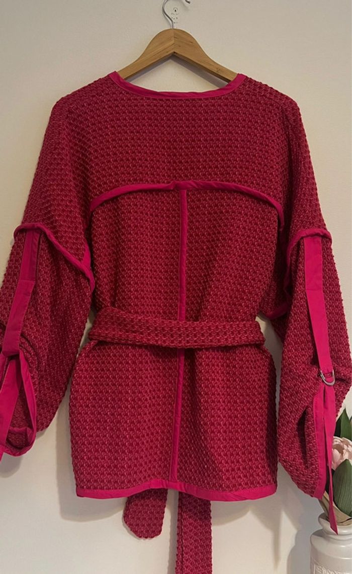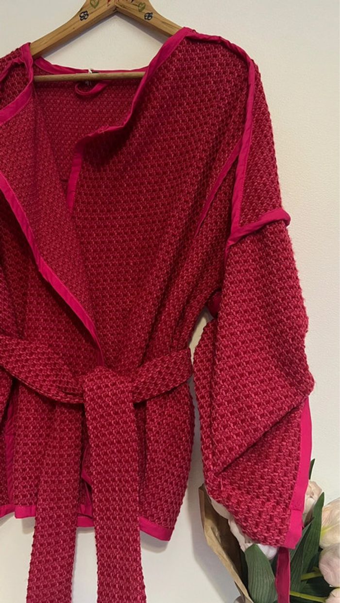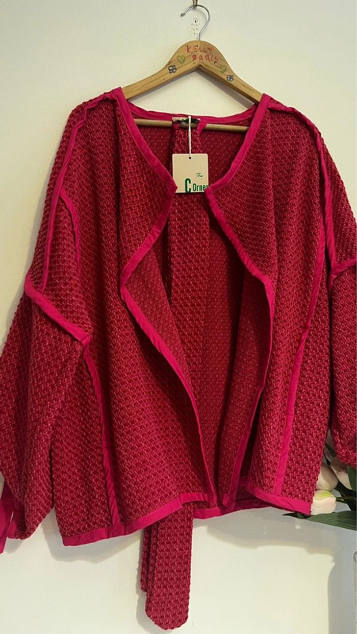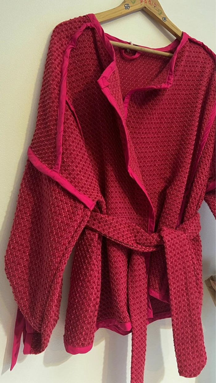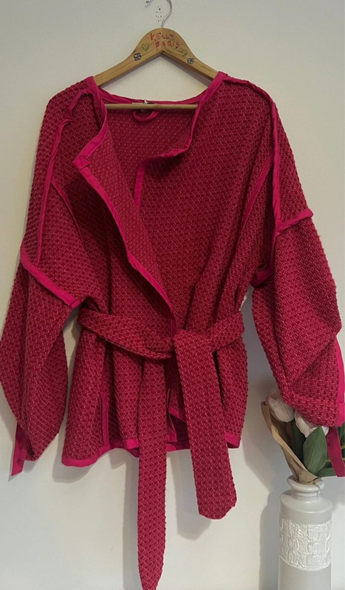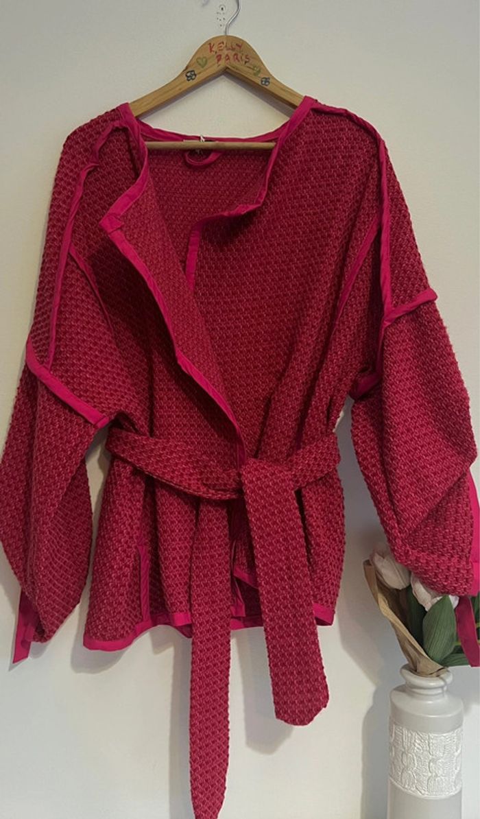 Fabrication Italienne Taille unique jusqu’au 44 Composition 63 % coton 19% polyester 2% laine 11% acrylique 5% autres fibres Ceinture du même tissus à la taille Sublime ♥️♥️