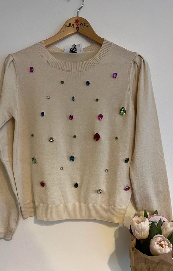 Pull crème sertie de pierres en couleurs 🤍🤍