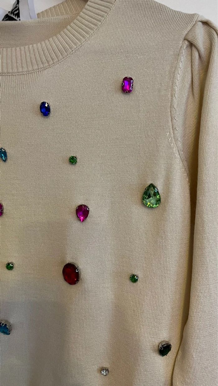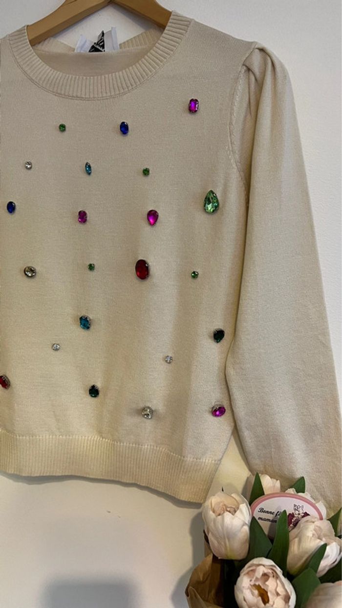 Pull crème sertie de pierres en couleurs 🤍🤍 - photo numéro 1