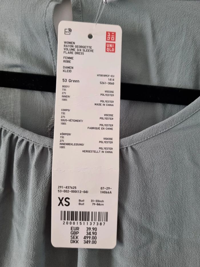 Robe vert d'eau neuve Uniqlo taille XS jamais portée (étiquette) Robe qui n'est pas transparente grâce à la doublure.