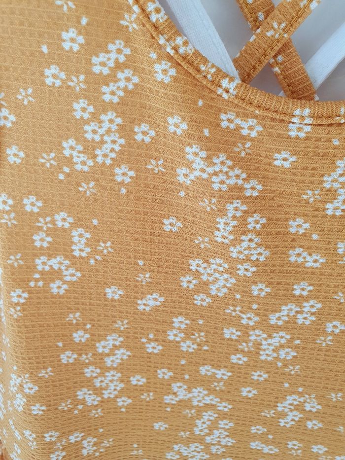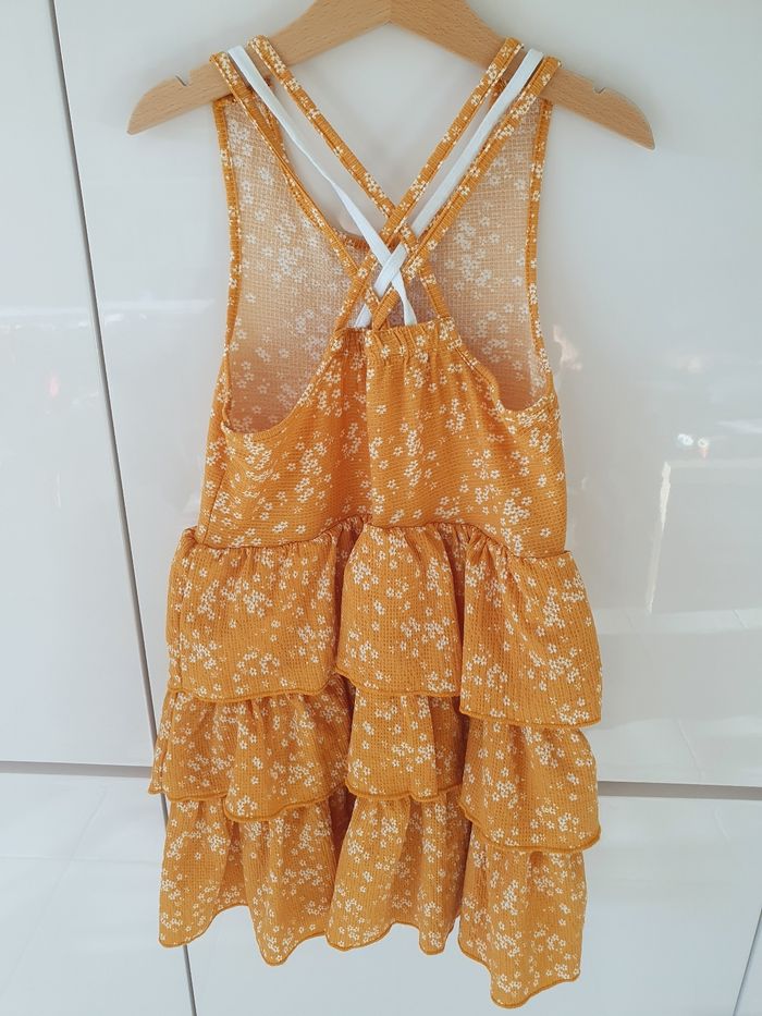 Robe été Orchestra Taille 8 ans Coloris jaune (un peu plus foncé que sur la photo) à fleurs blanches Volants sur la partie basse Très peu portée
