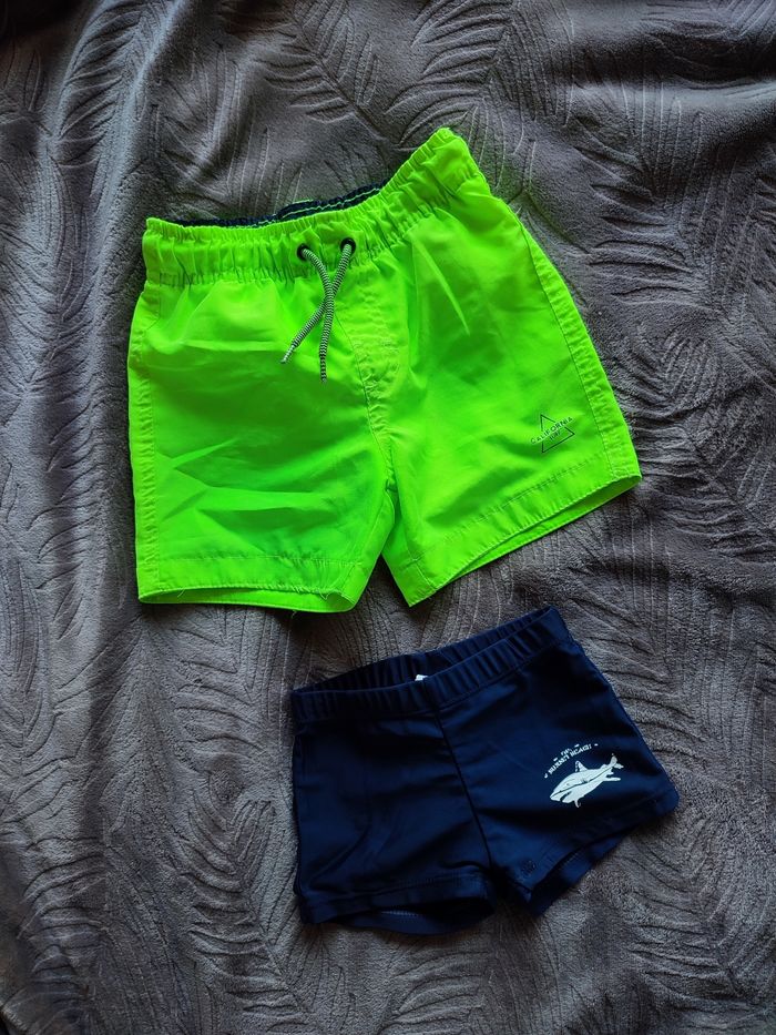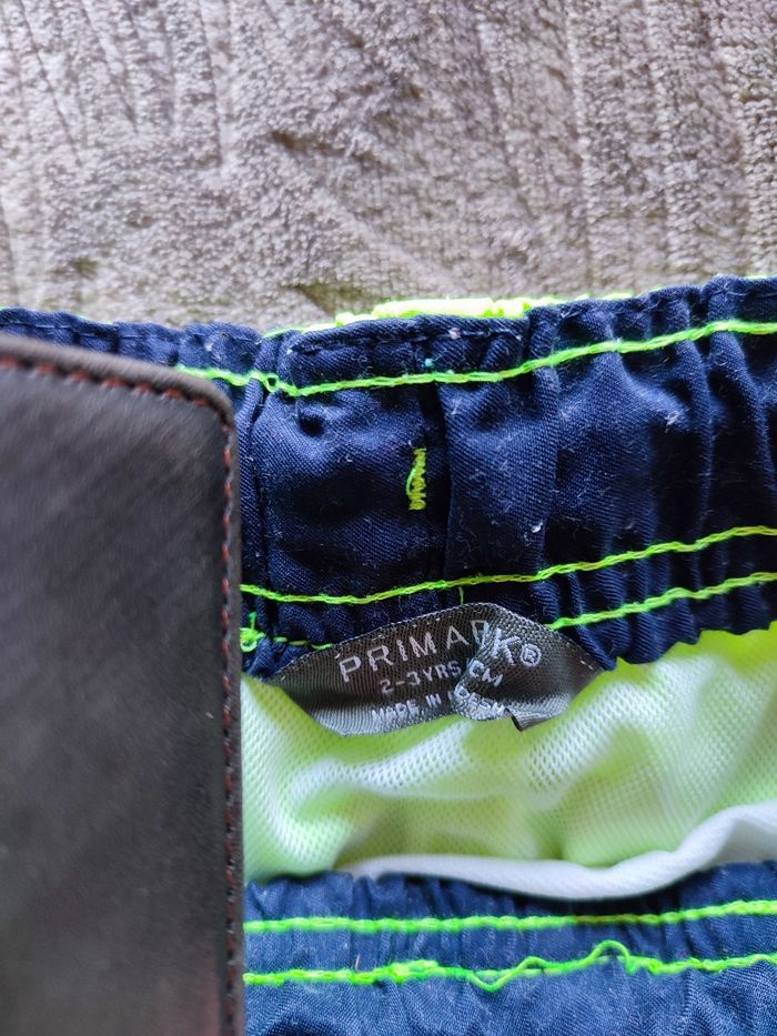 1 short de bain (jaune) 2/3 ans quelques mini tâches voir photo (Primark) 1 boxer de bain 2 ans en bon état (in extenso)