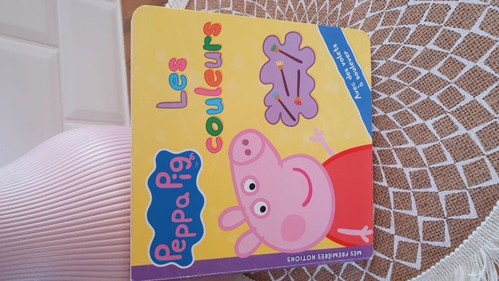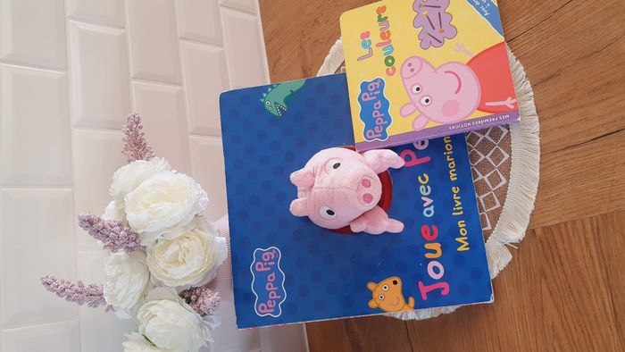 Lot 2 livres Peppa Pig Un livre marionnette "Joue avec Peppa" Un livre à volets "Les couleurs" Bon état (traces d'usure sur les tranches et la couverture)