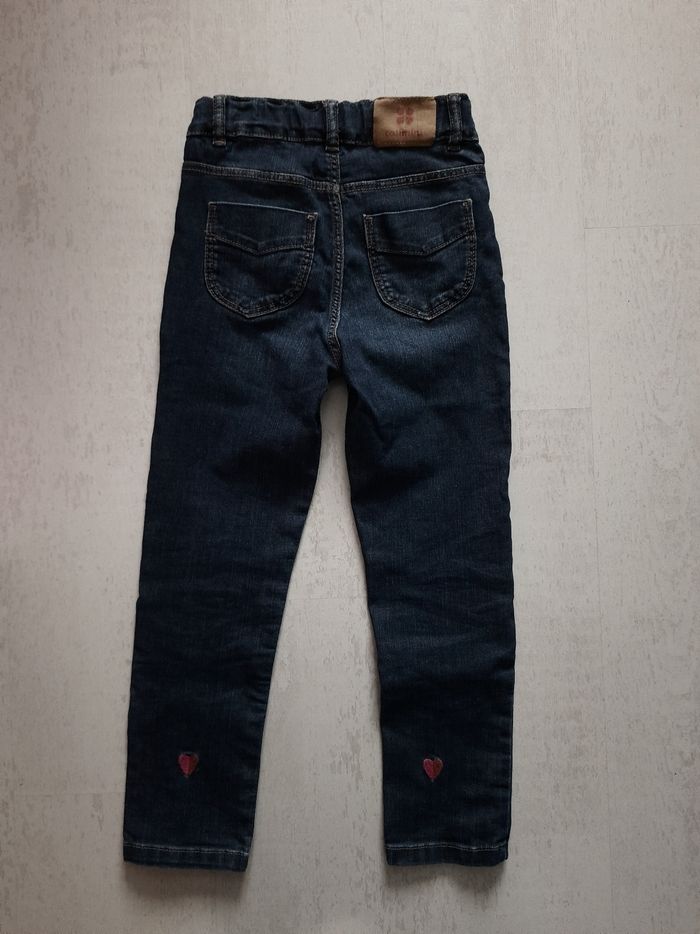 Joli jean slim pour la mi saison taille 8 ans 128cm. Matière assez fine. Broderies cœurs derrière. Neuf, jamais porté, juste lavé.