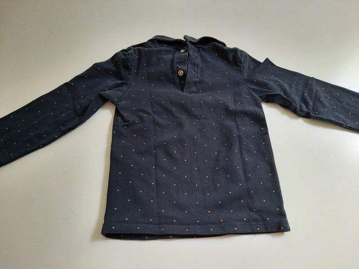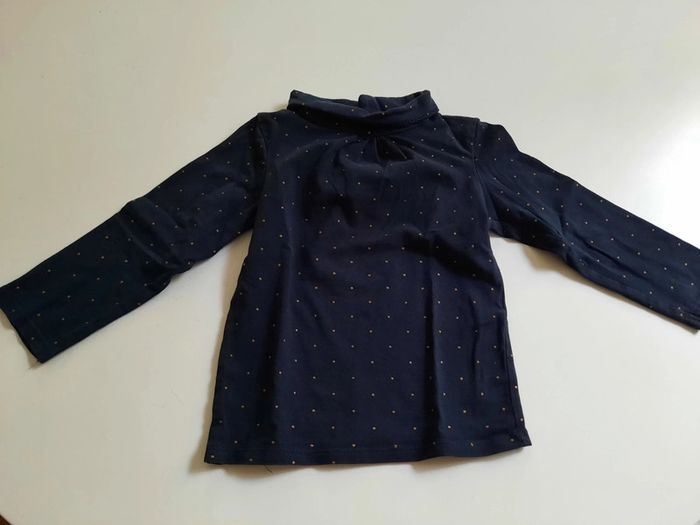 Sous pull Kiabi 24 mois bleu marine à pois dorés. En très bon état.