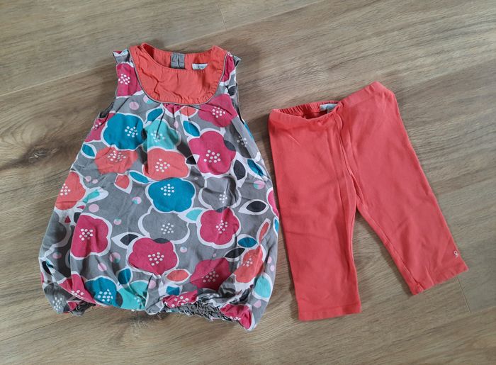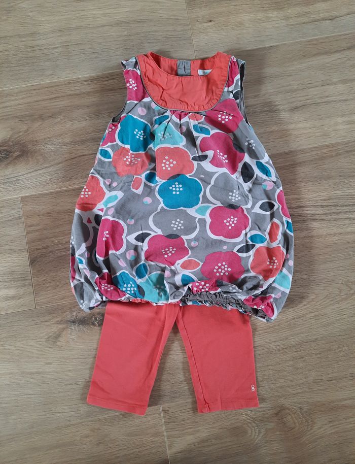 Ensemble robe à fleurs multicolore + legging orange Okaïdi/Obaïbi 3 ans