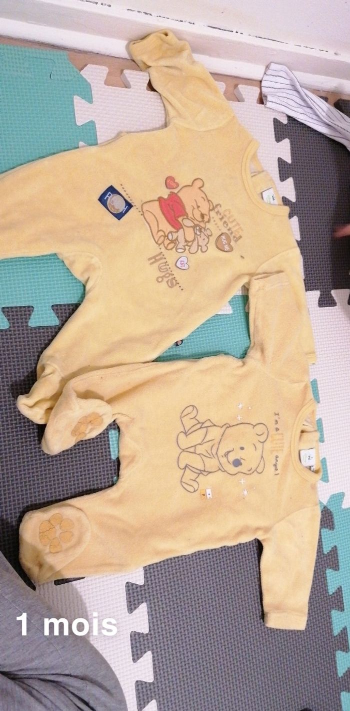 Lot de 2 pyjama Disney de taille 1 mois juste urssure sur les pied d'un pyjama voir photo