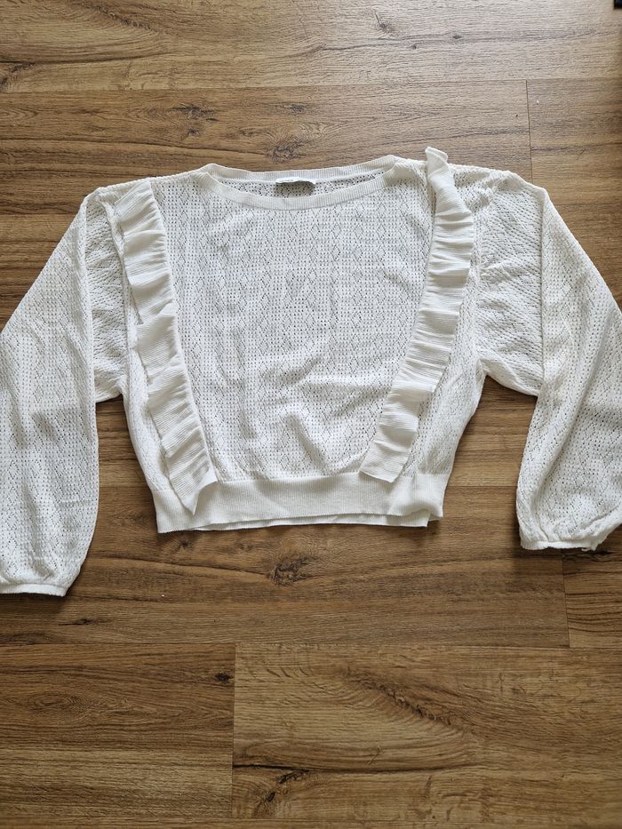 Pull léger ajouré, manches bouffantes, très belle pièce originale!!