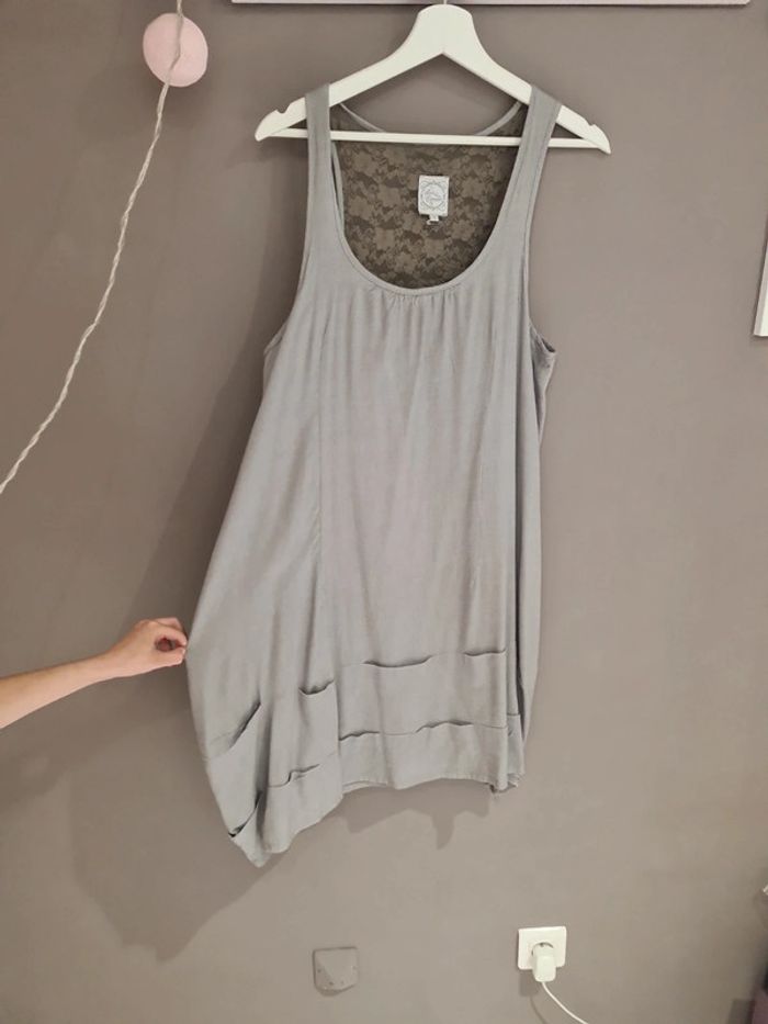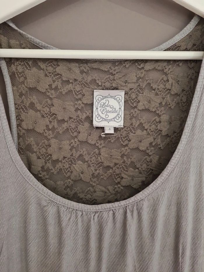 #dressing_tkj #dressing_tkj_adulte Robe tunique grise dos dentelle Très bon état Taille 4 Marque Lola Espeleta