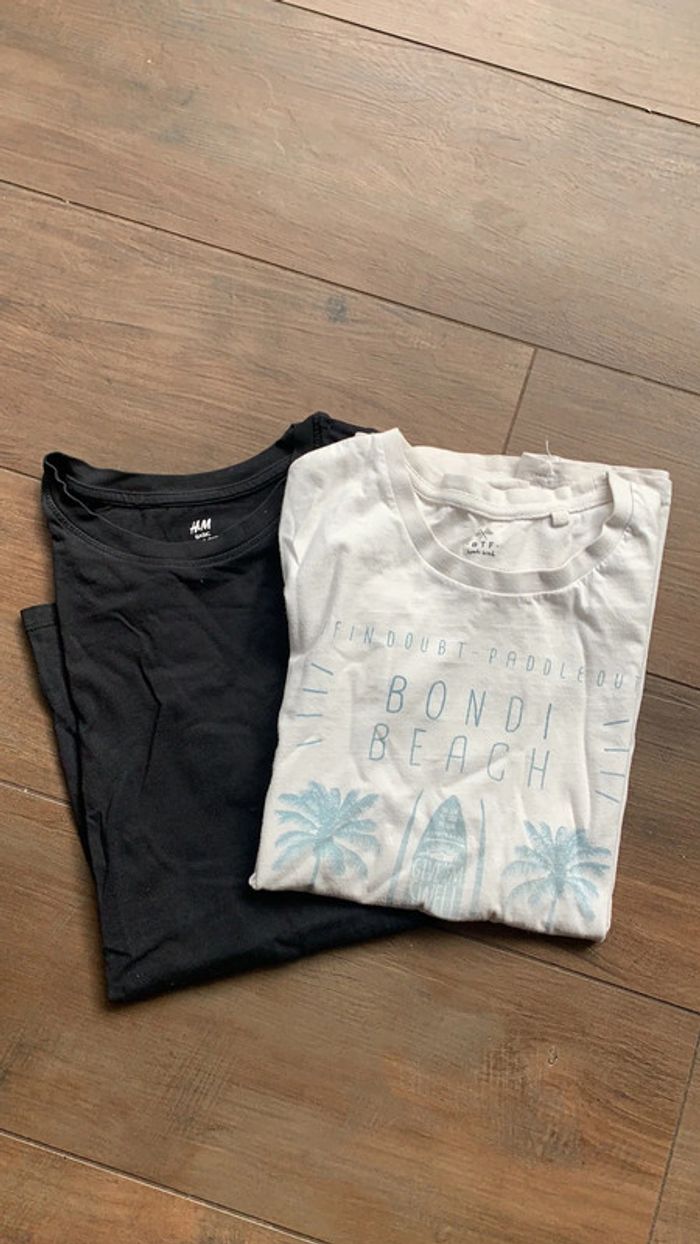 Lot 2 tee-shirts 14 ans 1 TS Bondi Beach blanc imprimé 1 TS noir H&M basic