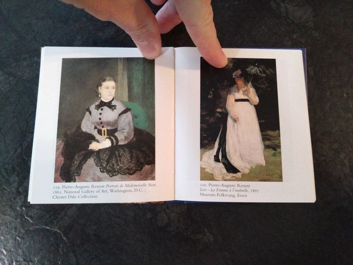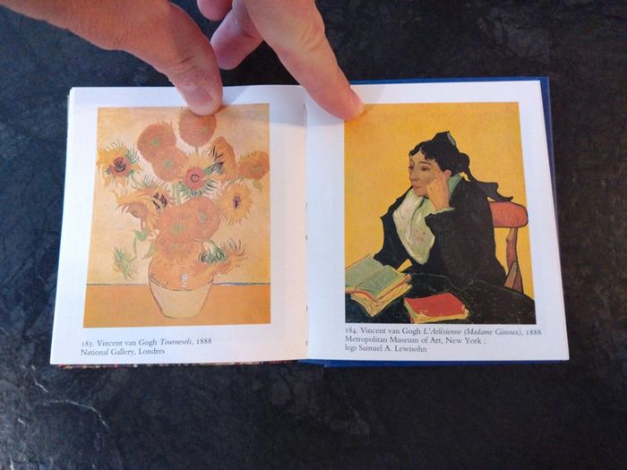 Petit livre de poche (10x10 cm) avec différents tableaux d'artistes tel que Claude Monet, Vincent van Gogh, Paul Cézanne,...