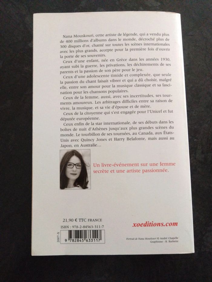 Livre de Nana Mouskouri - la fille de la chauve-souris. Mémoires en collaboration avec Lionel Duroy Quelques points et tâches jaunâtres sur des pages. La couverture avant est un peu abîmé. XO éditions . #jeremyamaha_MUSIQUE #jeremyamaha_CINEMA_CHANSON