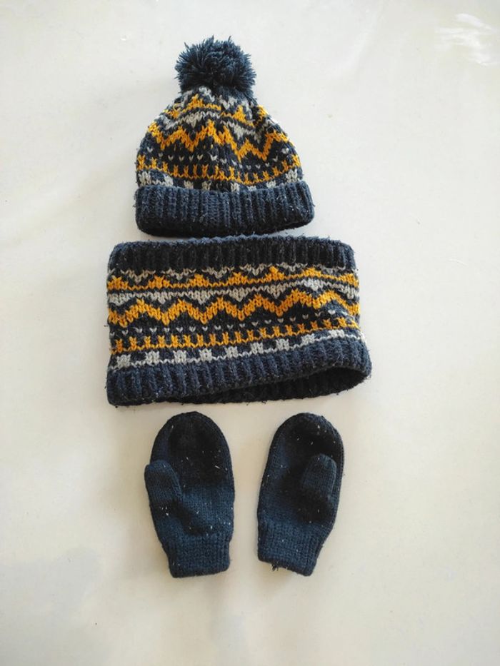 Ensemble bonnet tour de cou moufles - photo numéro 1