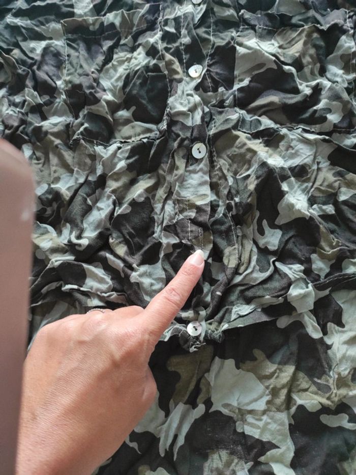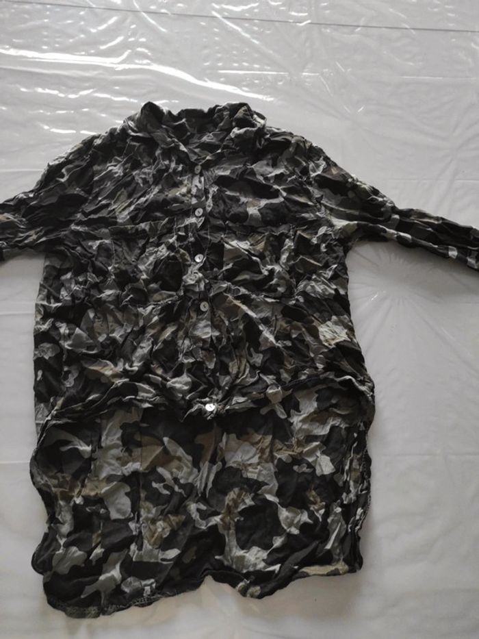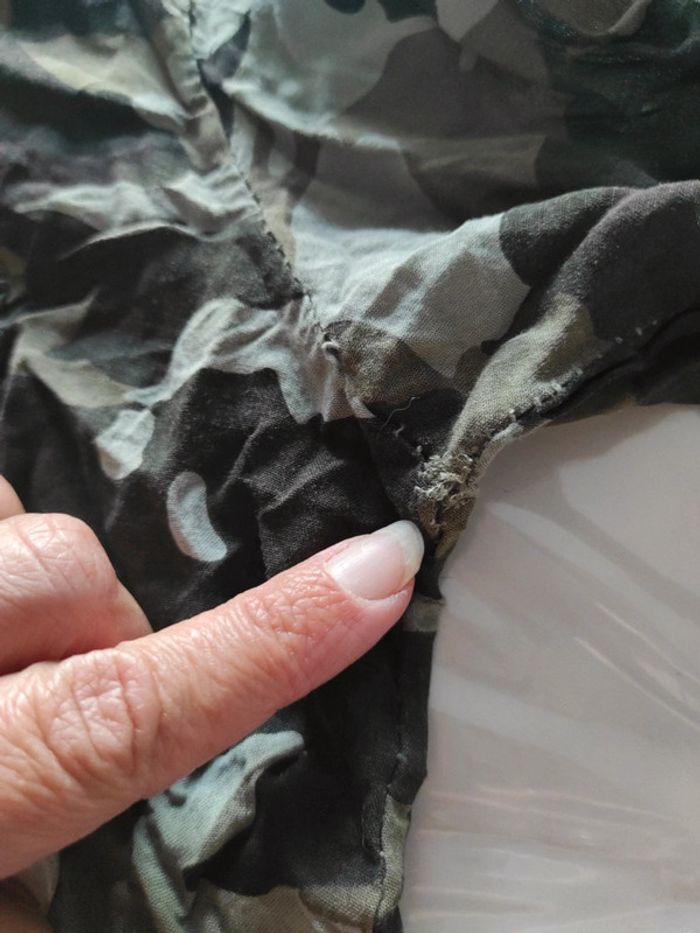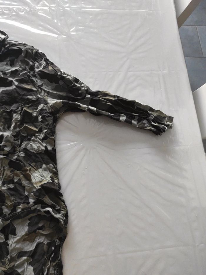 Manque 1 bouton et point a faire sous l'aisselle Transparent Pas d'Étiquette taille mais M Plus long derrière