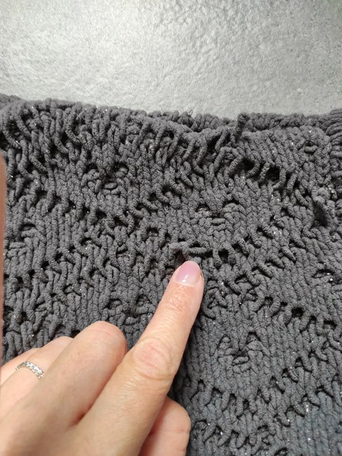 Maille qui ressorte un peu mais en bon état Peu porté 16 ans Gris foncé pailleté