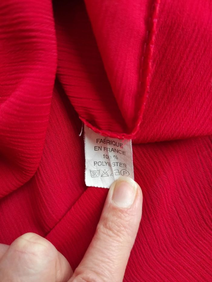 Légère et transparente prévoir débardeur en dessous Étiquette taille coupée mais 48/50