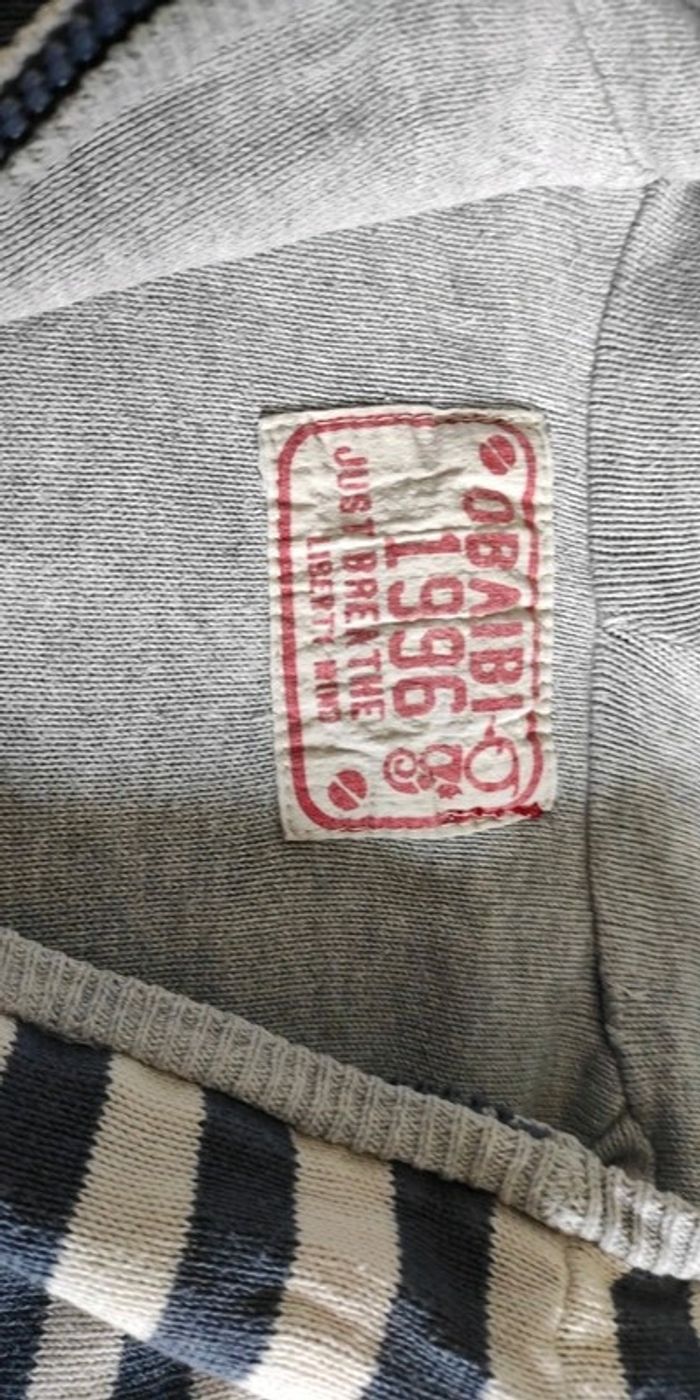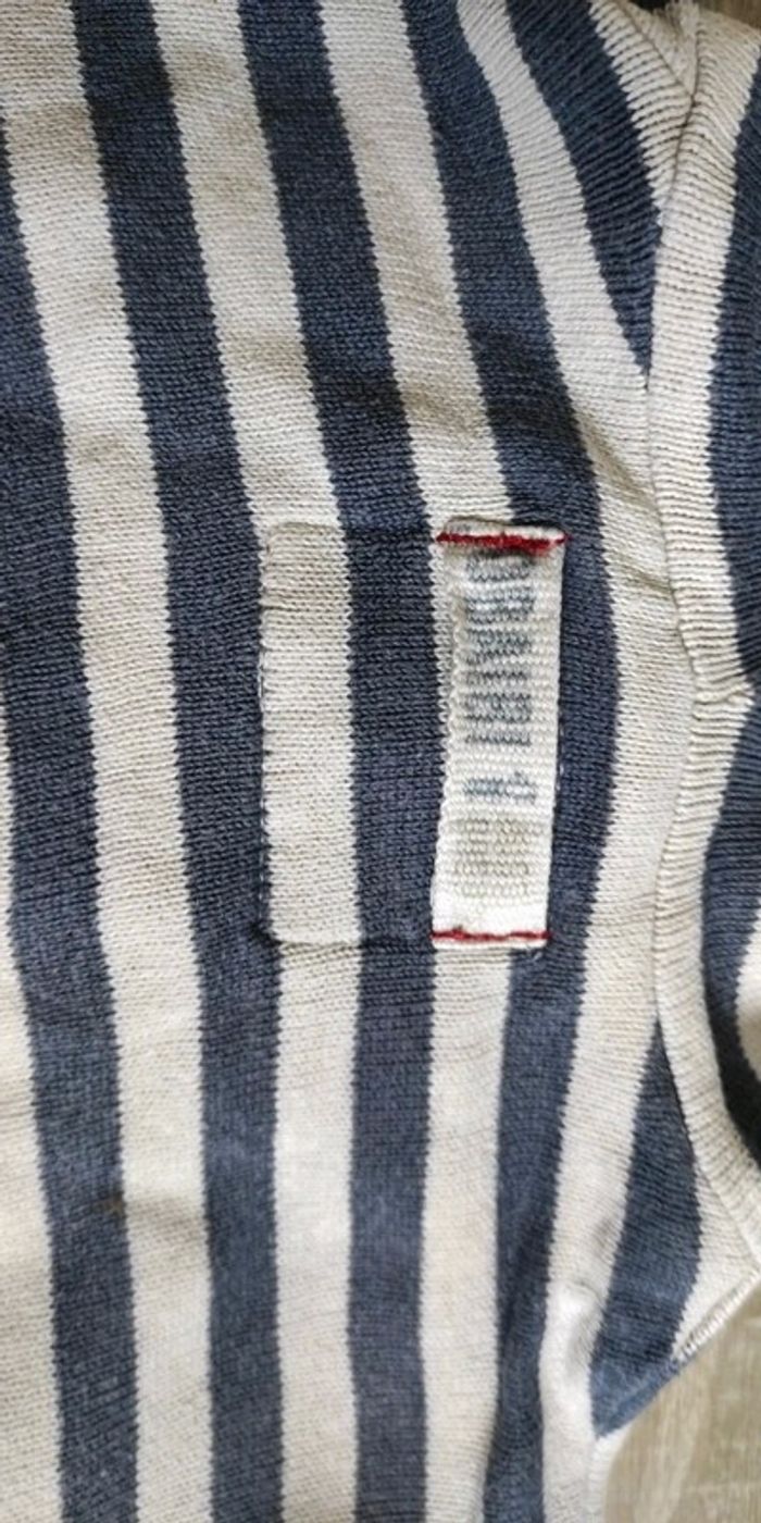 Étiquette taille coupée mais 3 ans Petite tâche à une manche mais qui se voit peu