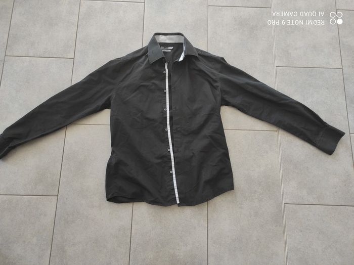 Chemise homme noir et blanche taille L coupe ajustée manche longue