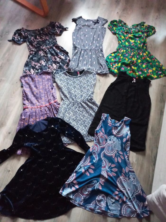 En très bon état Différentes marques(creeks,okaidi, Orchestra,Sergent Major..) A noter : sergent Major noté 11 ans mais taille 10/11 ans La robe Orchestra noire noté 14 ans mais taille très petit 10/12ans La robe bleu marine et la robe asymetrie: plus d étiquettes mais taille 10 ans 4€ l unité