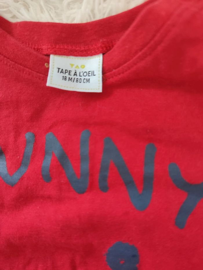 T-shirt manches longues 18 mois, comme neuf. Rouge avec smiley. Marque Tape à l'oeil Réduction sur les lots