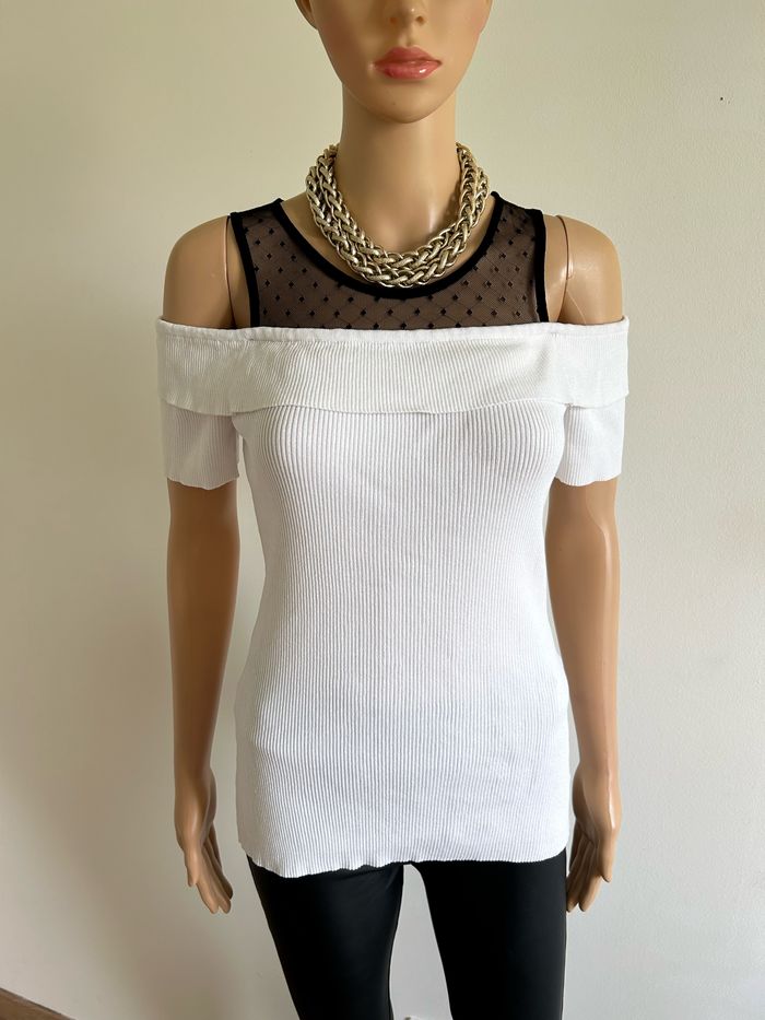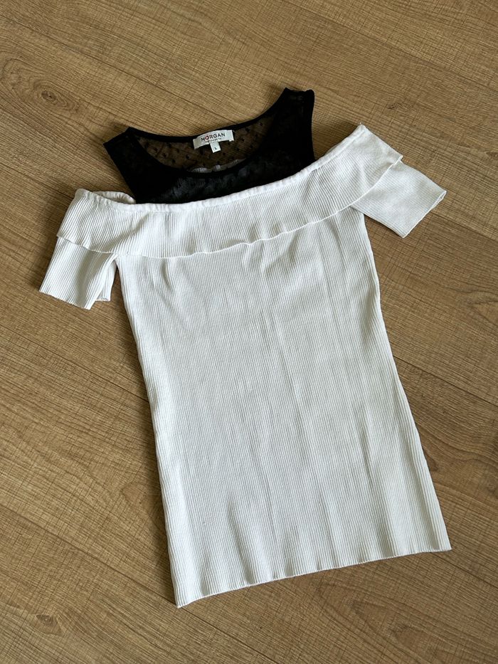 Haut blanc et noir à manches courtes Morgan taille L TBE (taille petit)