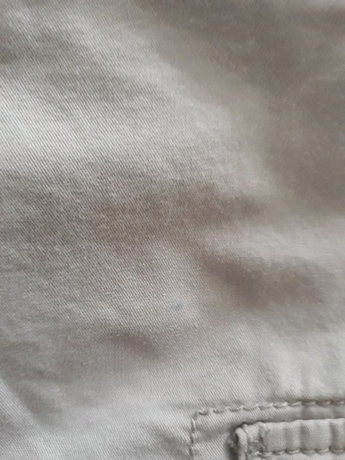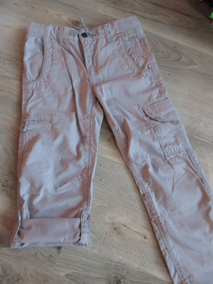 En très bon état (sauf toute petite tâche cf photo) Pantalon léger 'Okaidi' Régular qui se ferme par une pression et se serre avec le cordon. Il peut également se transformer en pantacourt. Couleur gris clair