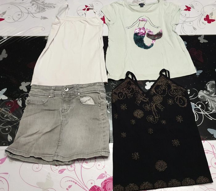 Lot de 4 Vêtements ÉTÉ Fille en bon état (6 ans) : - 1 Tee-shirts manche courtes - 2 Débardeurs - 1 jupe en jeans #pamdu79_6ans