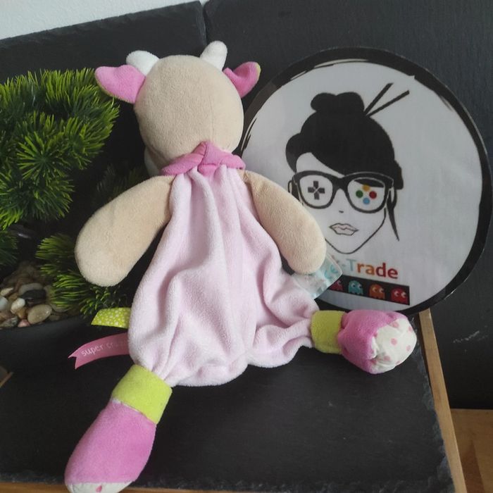 Doudou Peluche Plat Vache Coquillette Rose Beige Blanc Fleur Baby Nat' #geektradedoudou Bon etat Afin de ne pas abîmer les doudous et de laisser le choix dans l'utilisation de la lessive les peluches ne sont pas lavées avant envoi Description complément : Petit nettoyage à prévoir Vous achetez ce que vous voyez les photos font entièrement partie de la description Transport : Les frais de transport comprennent les frais du transporteur ainsi que l'emballage pour protéger au mieux votre achat. Chaque achat est envoyé en format colis avec numéro de suivi Le poids du colis est de 500g finit (je ne peux pas faire moins) il peut donc y avoir plusieurs objets dans le carton si vous le souhaitez (contactez moi afinde grouper les frais de port) Référencement : #geektradedoudou #peluche #plush  #doudou #