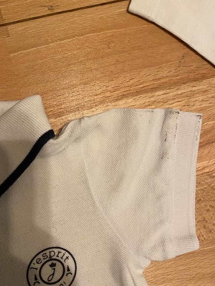 1 body manche longue blanc 6 mois très bon etat 1 body manche courte blanc 6 mois bon etat mais avec usure sur une manche ( cf photo )