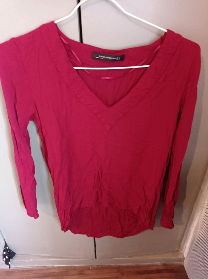 Zara woman. Haut très léger. Abimé au niveau du milieu du décolleté (cf photo).