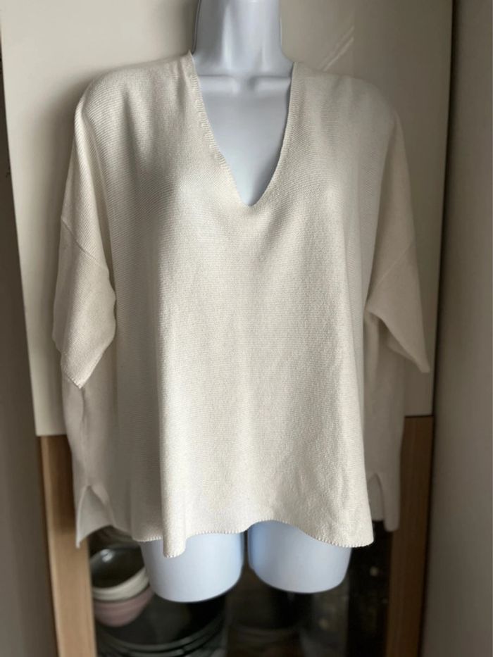 Pull col v manches courtes maille blanc cassé mango - photo numéro 1