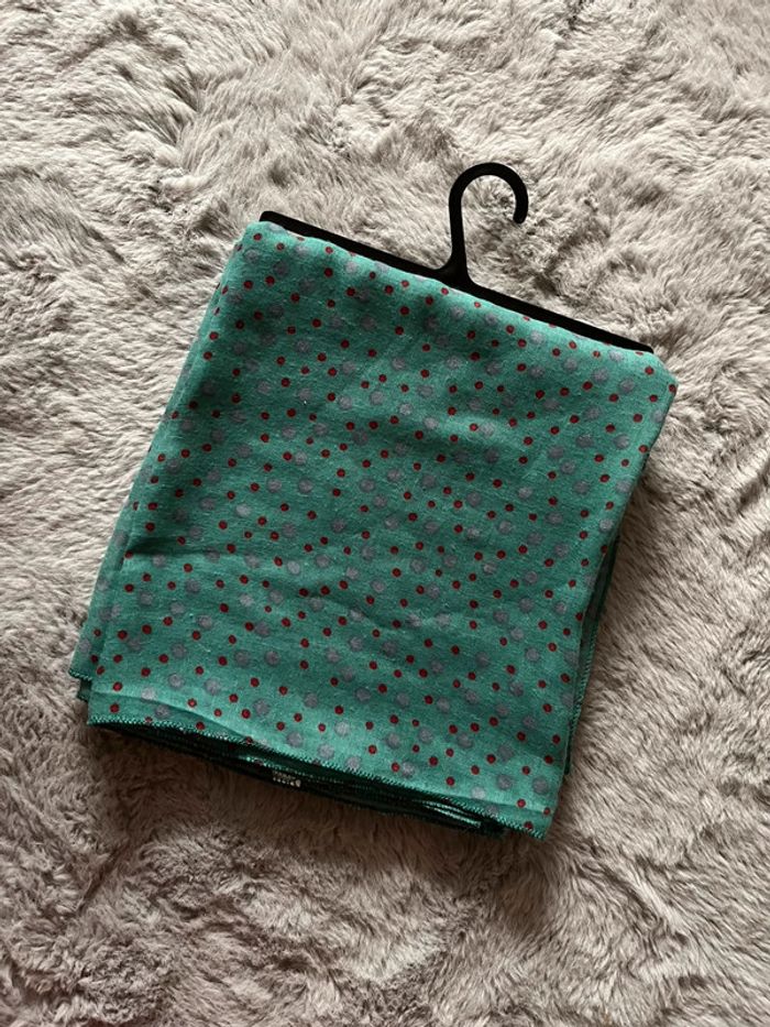 Foulard châle neuf vert à pois rouge - photo numéro 1