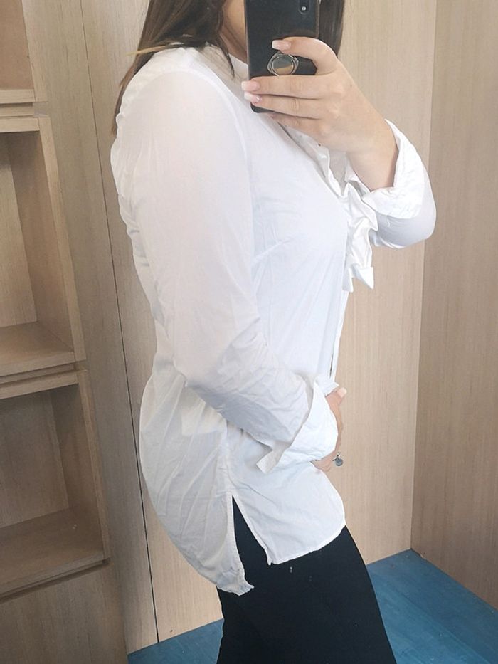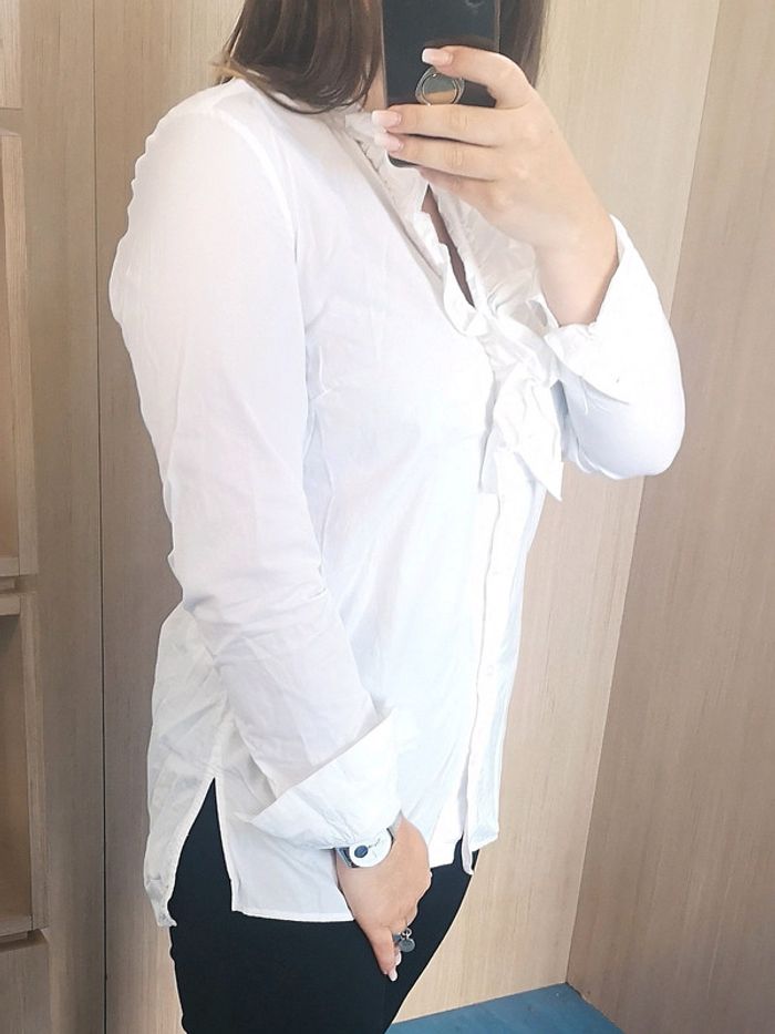 Jolie chemise détail froufrou sur le devant, plus longue derrière que devant