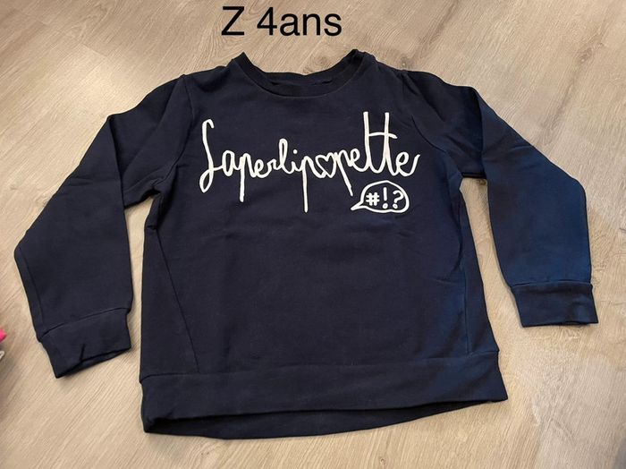 Sweat bleu Marine inscription « Saperlipopette ». Porté une seule fois
