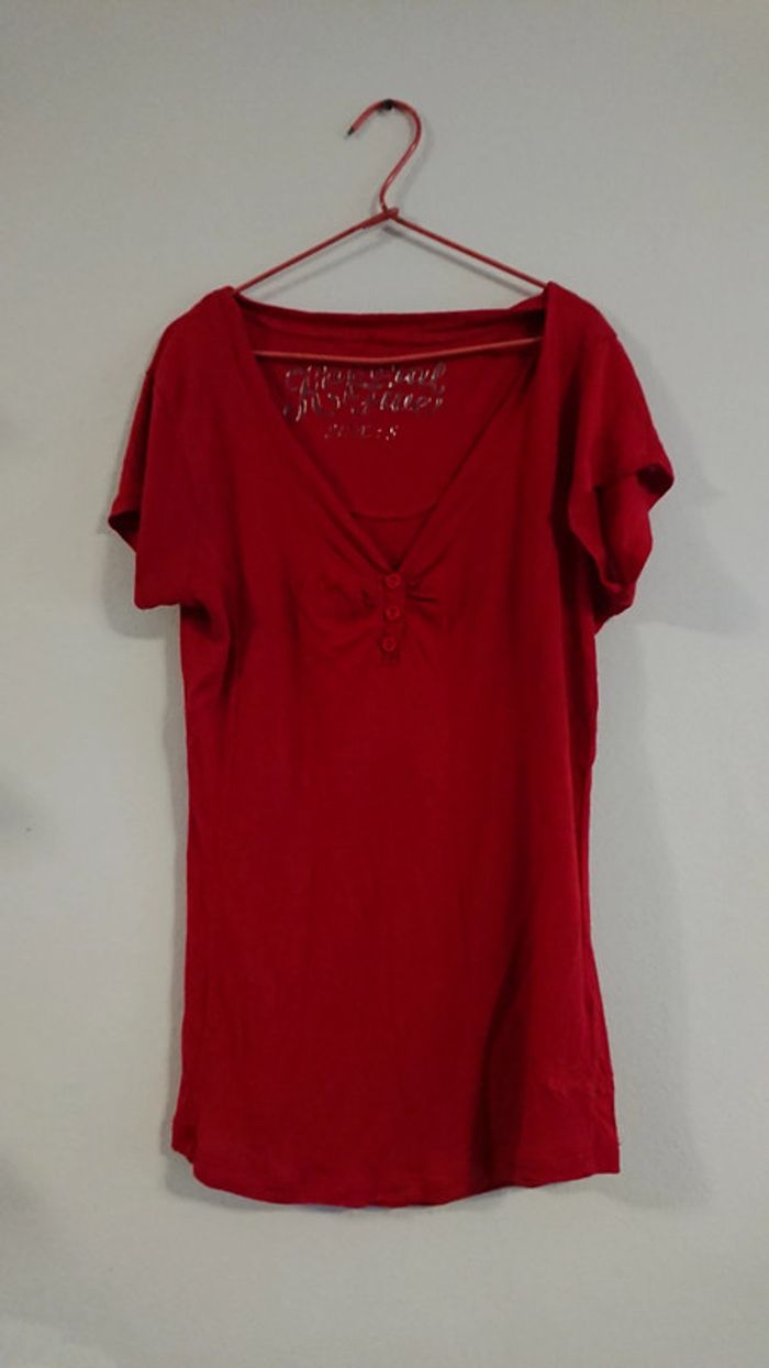Simple matière agréable idéal pour l'été Très beau décolleté. Détail avec petit boutons au niveau du col en v Rouge foncé #kaporalfemme #kaporal