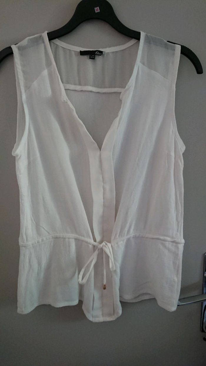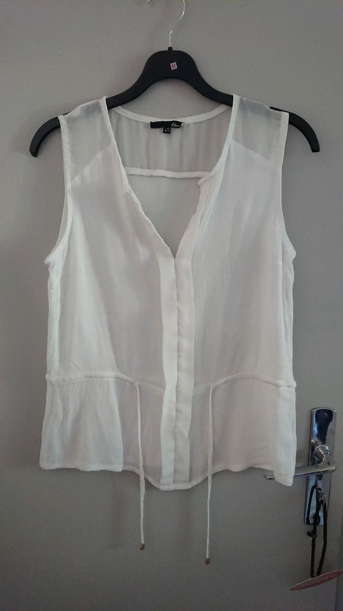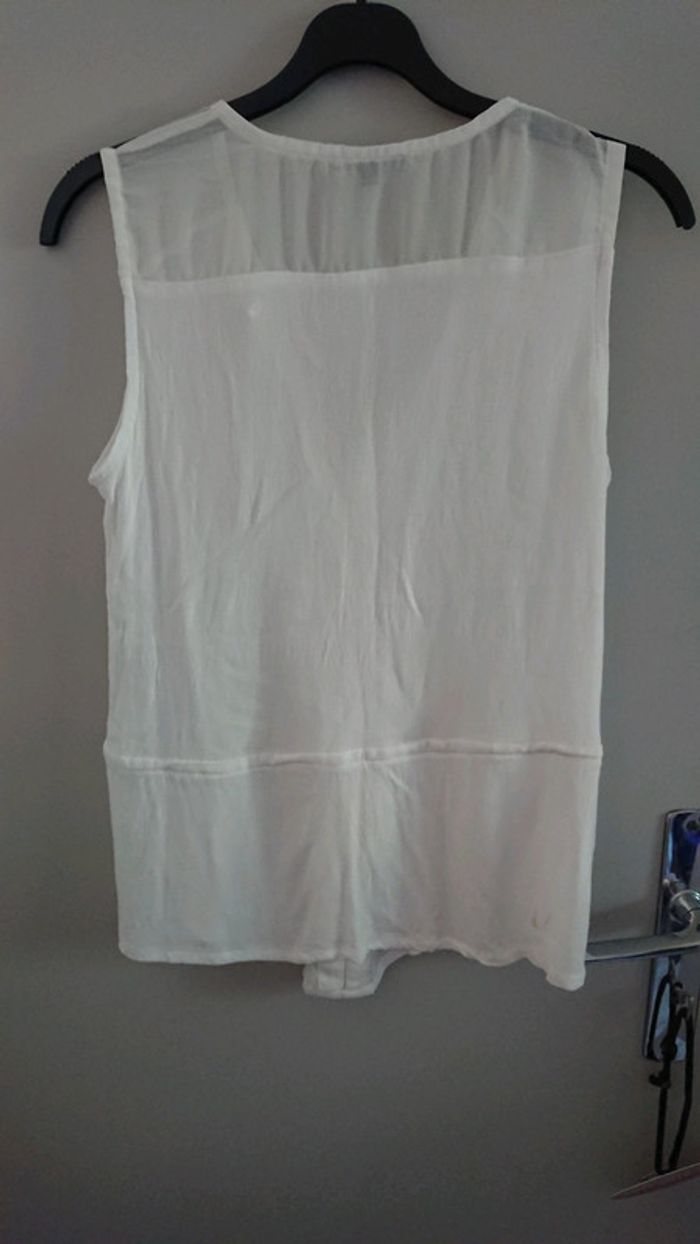 Peux se régler au niveau de la taille Beau décolleté Tissu fin fluide de qualité Juste une petite tache à l'arrière voir dernière photo. Elle doit partir au lavage mais je ne fait pas de machine de blanc de suite. #etam38 #hautréglable #topblanc #décolleté #chicenblanc