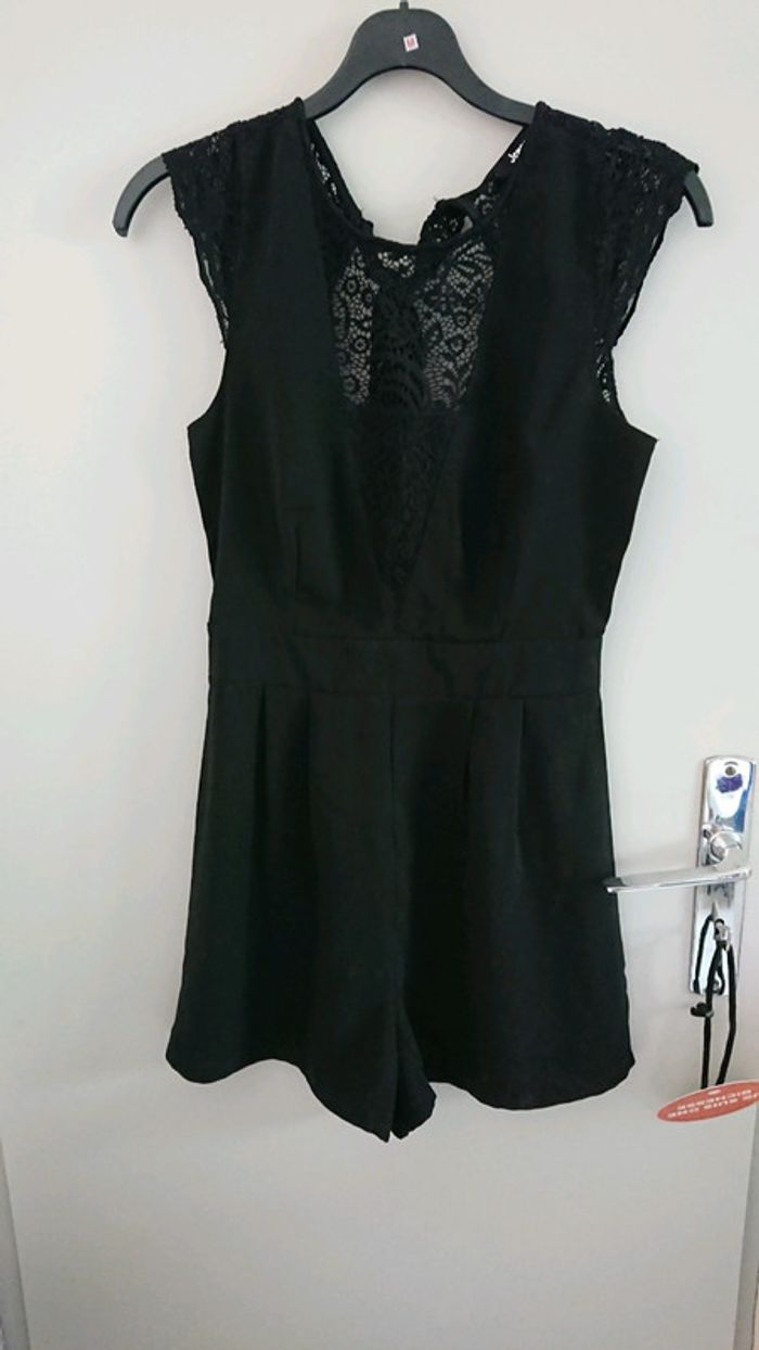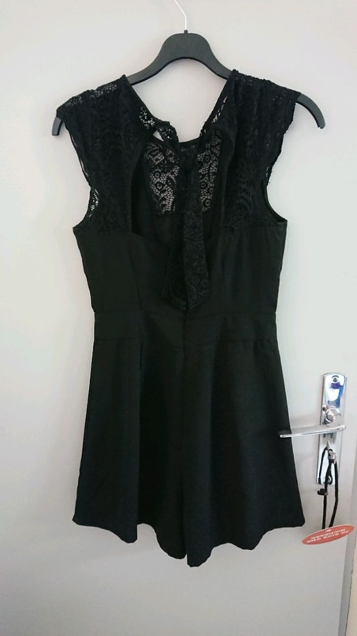Détail dentelle au niveau du décolleté. Doublé au niveau de la poitrine Et ouverture dos avec noeud en dentelle Très agréable porté et très chic Taille s Nikel #conbishort36 #combishortsexy #combishortdentelle #dentellenoire #ouverturedos