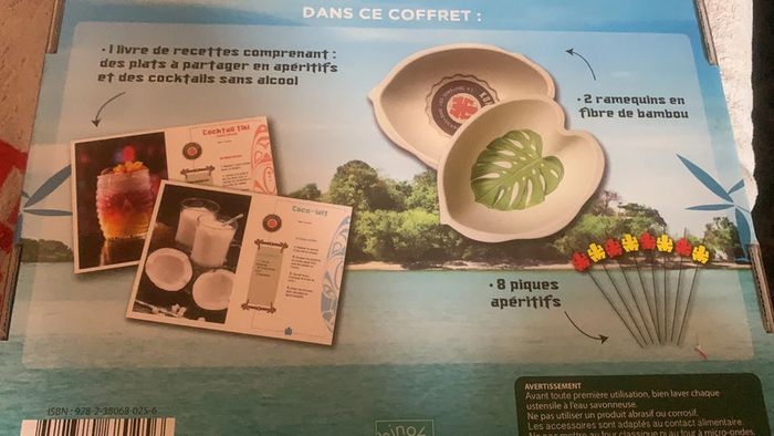 Le set contient: 1 livre de recettes plats à partager et cocktails sans alcool 2 ramequins en fibre de bambou 8 piques apéritifs