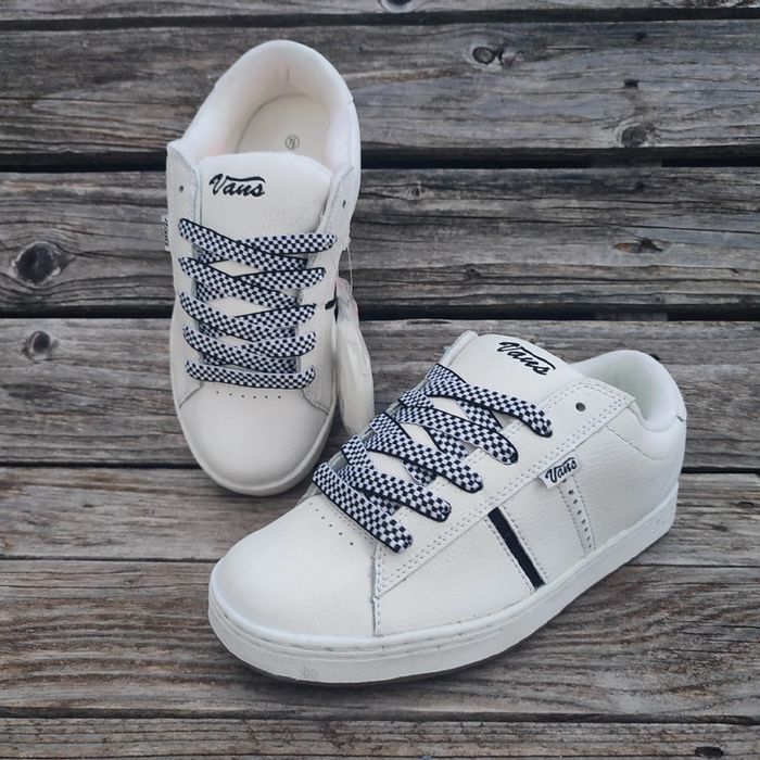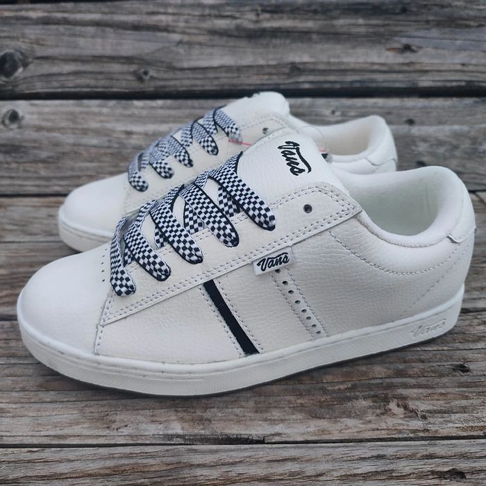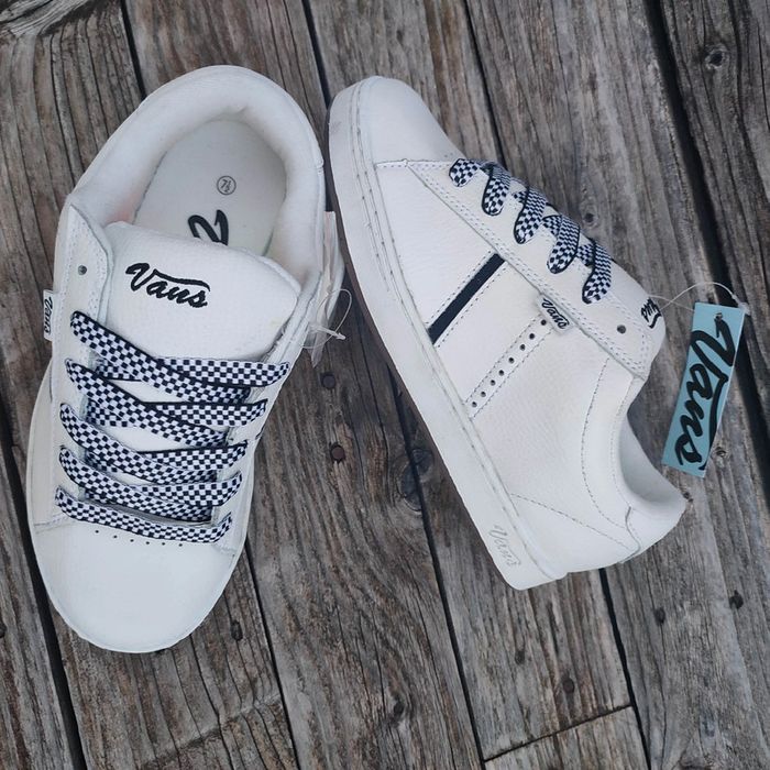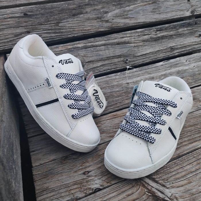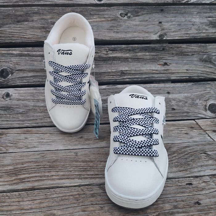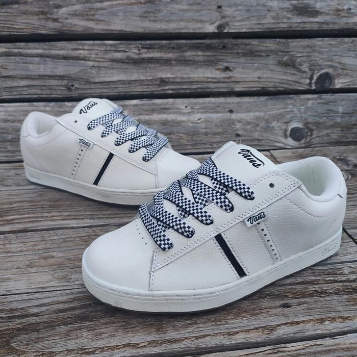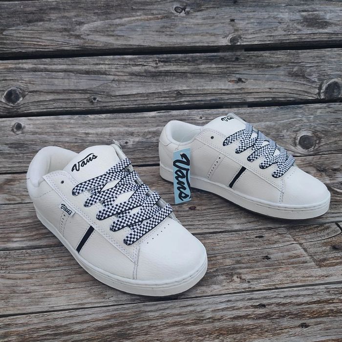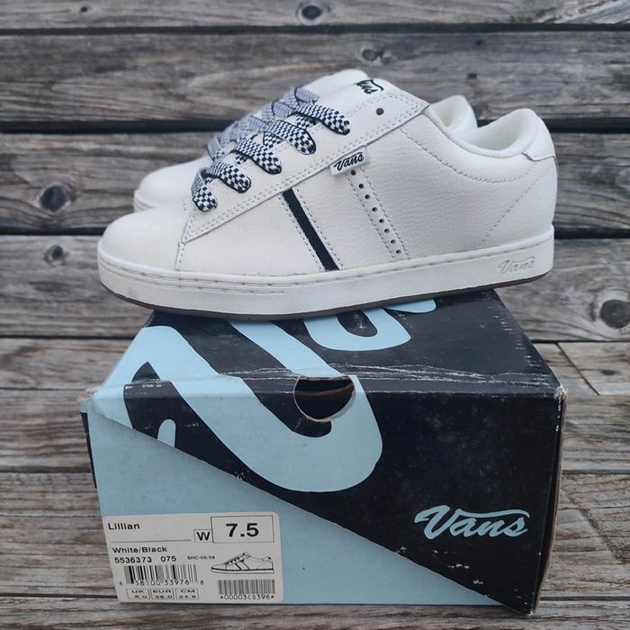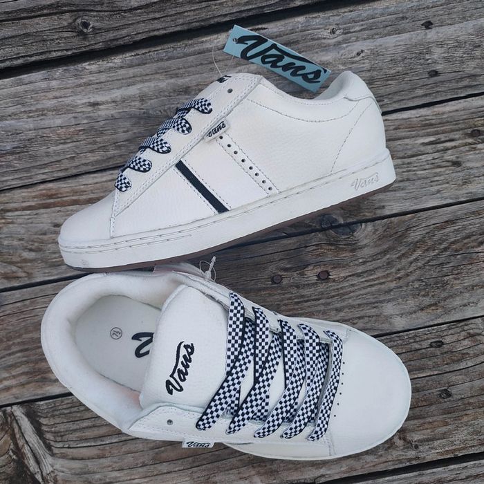 Grosses baskets vintage skateshoes y2k Vans noires et blanches en cuir - photo numéro 1