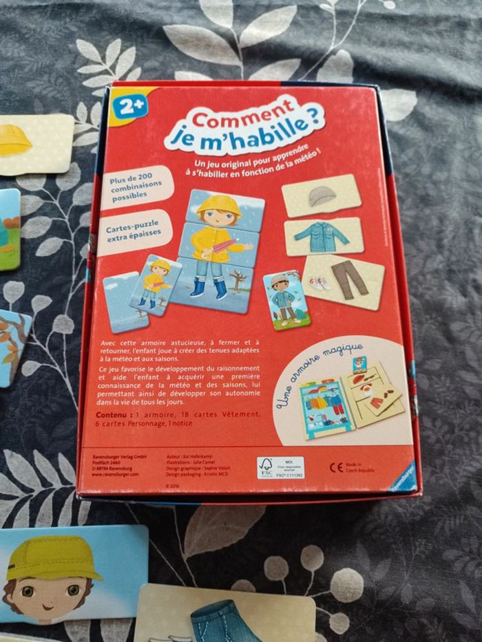 Jeu complet 18 cartes vêtements en parfait état et 6 cartes personnages également. Petit angle de la boîte légèrement abîmée et le milieu de la boîte ( très petit, voir photo) #didi_50jouets