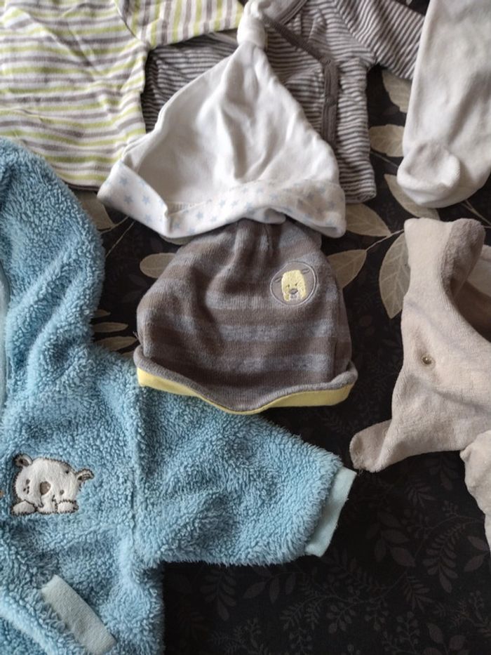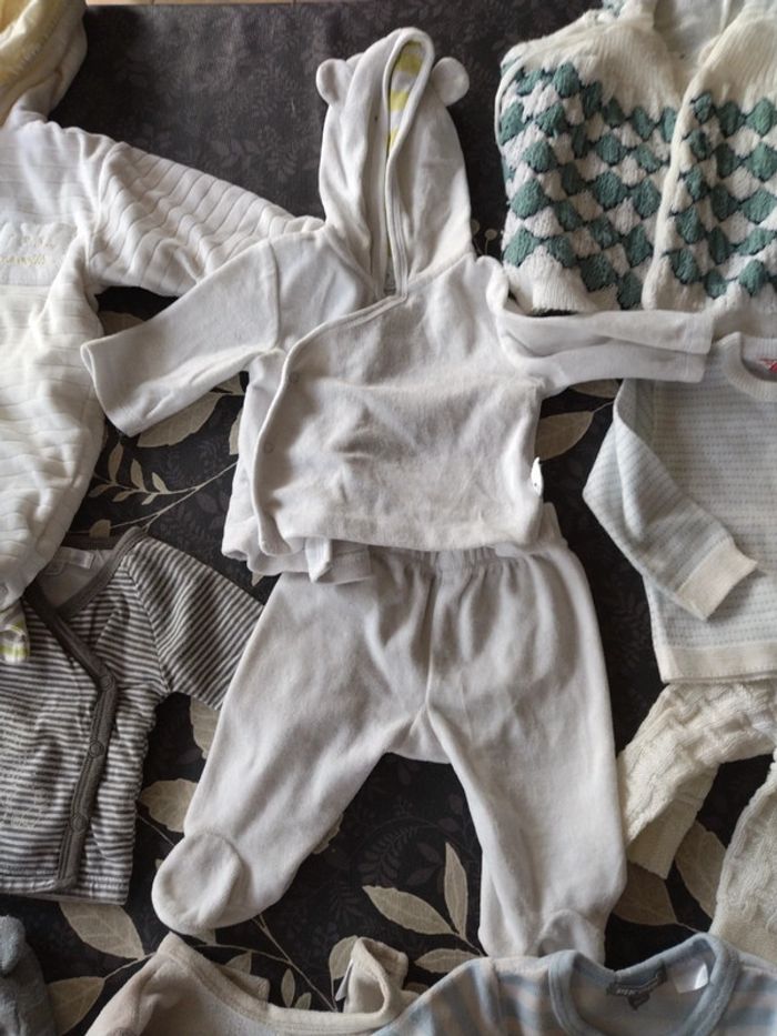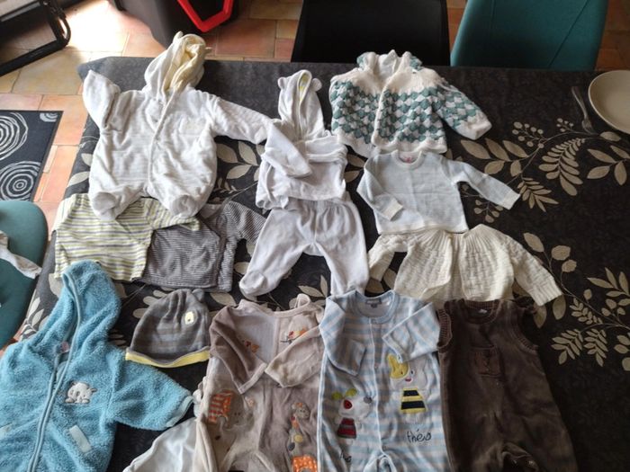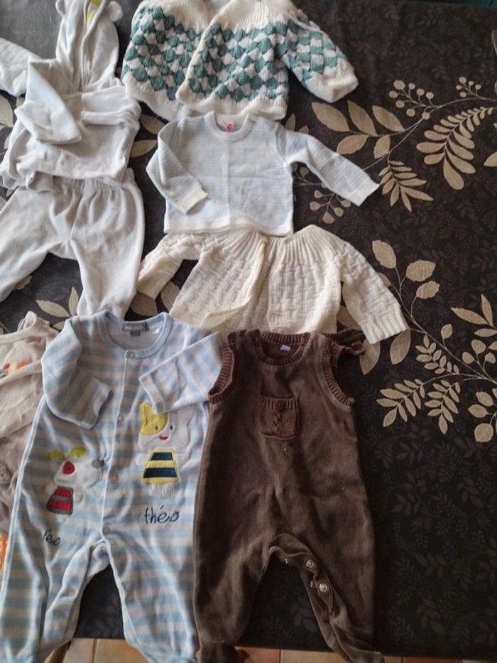 Lot différentes marques 1 mois ( 13 articles) Seul le petit gilet marron beige est de taille 0 mois et le gilet en laine vert et blanc plutôt un 3-6 mois. #didi_50garçon1mois
