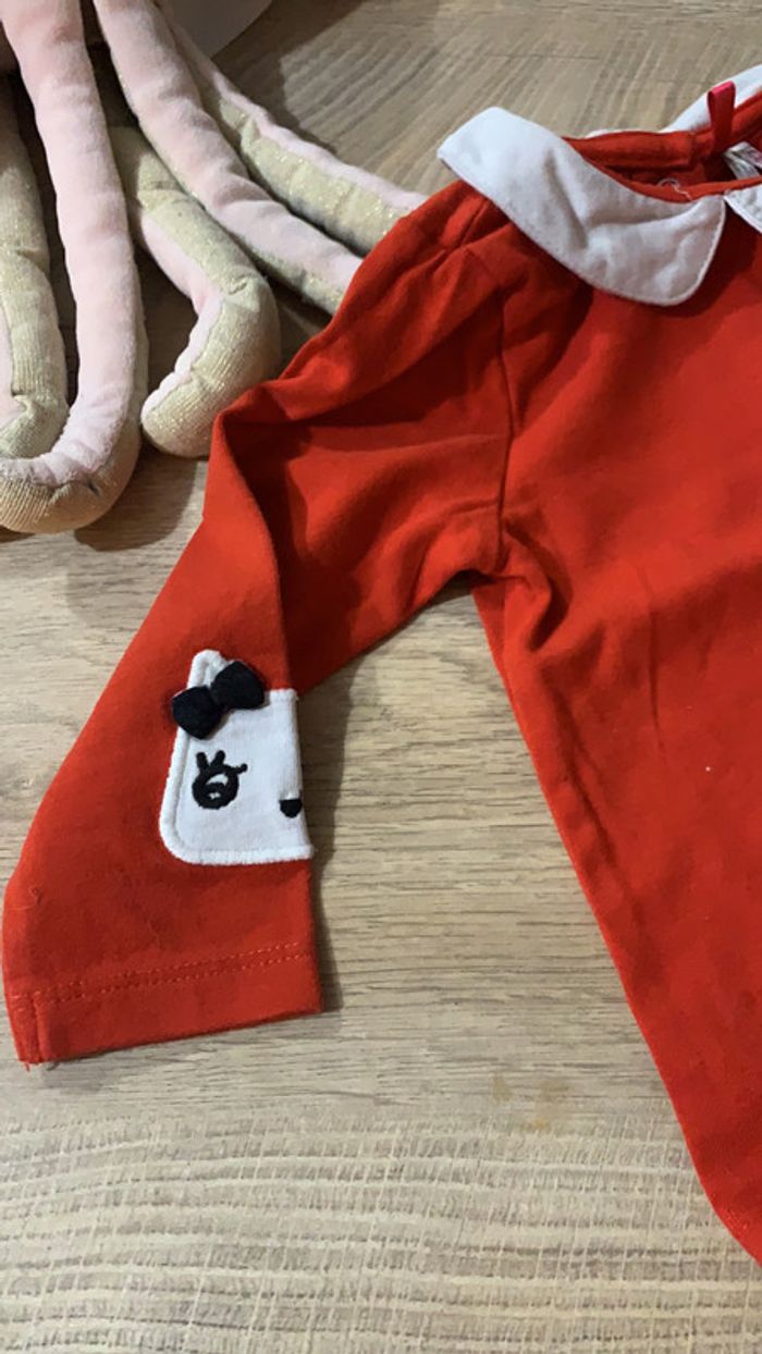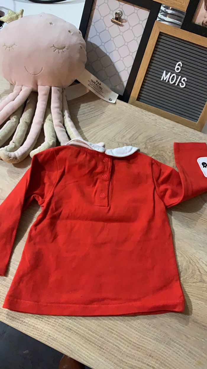 tee shirt 6 mois avec petit chat sur la manche un peu moins rouge que sur la photo #6_mois_fille_meltylio