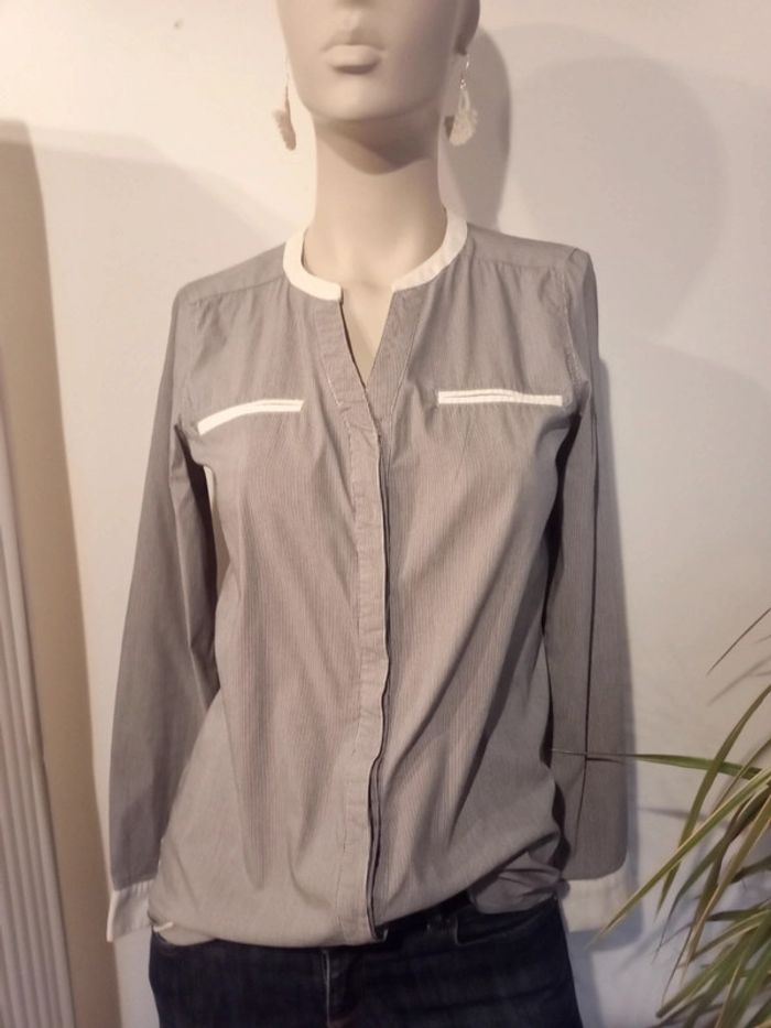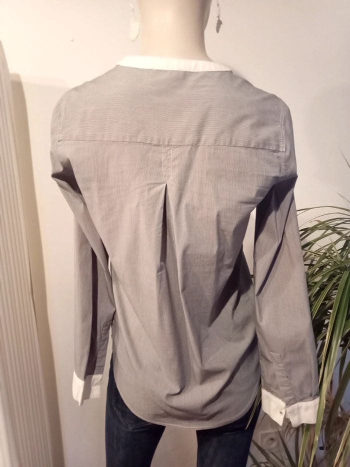 Fines rayures Manches longues Boutonnière cachée sous revers Étiquette composition coupée Un peu stretch #autrementnay36
