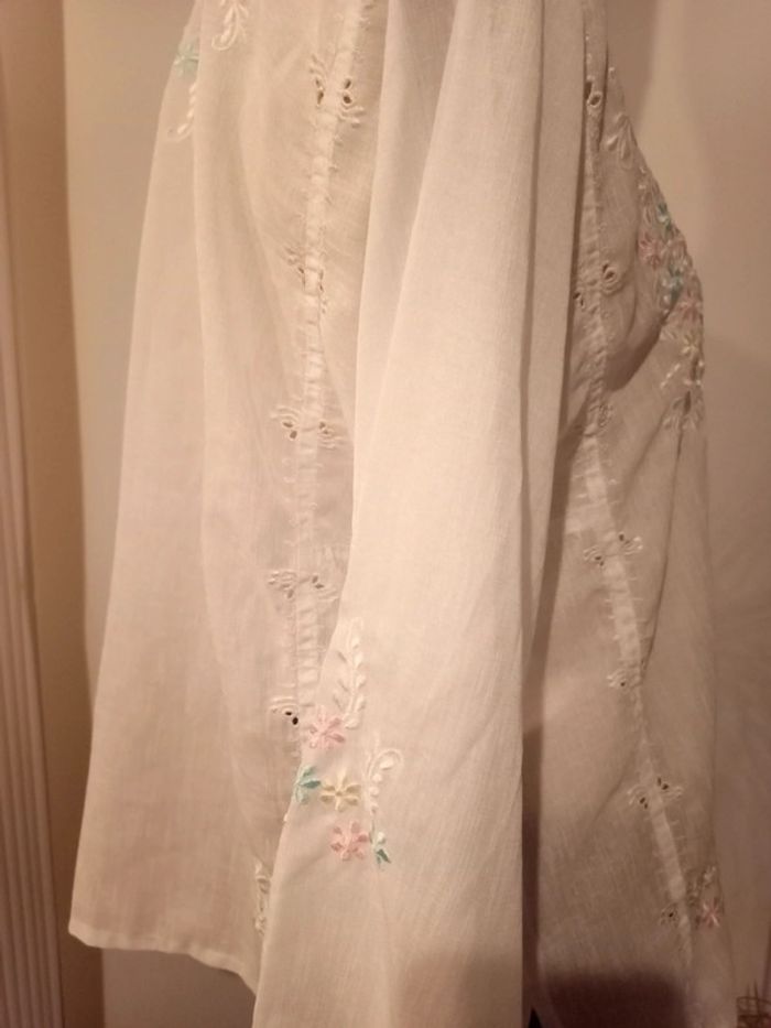 Des petites fleurs brodées partout💐 Boutons jusqu'à poitrine Manches 3/4 Aucune étiquette, probablement confection mains #autrementnay40