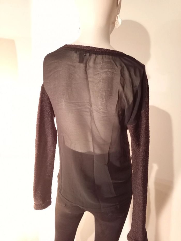 Bi matière Dos voile Manches longues Attention un petit fil un peu tiré dans le dos, voir dernière photo Étiquette composition coupée