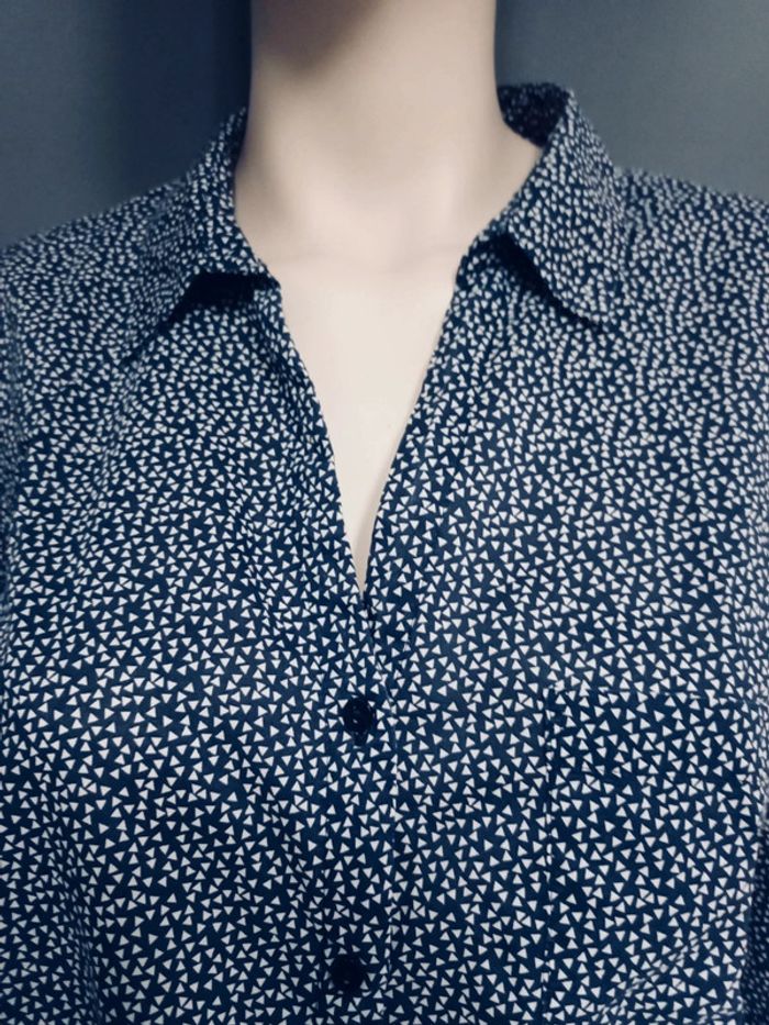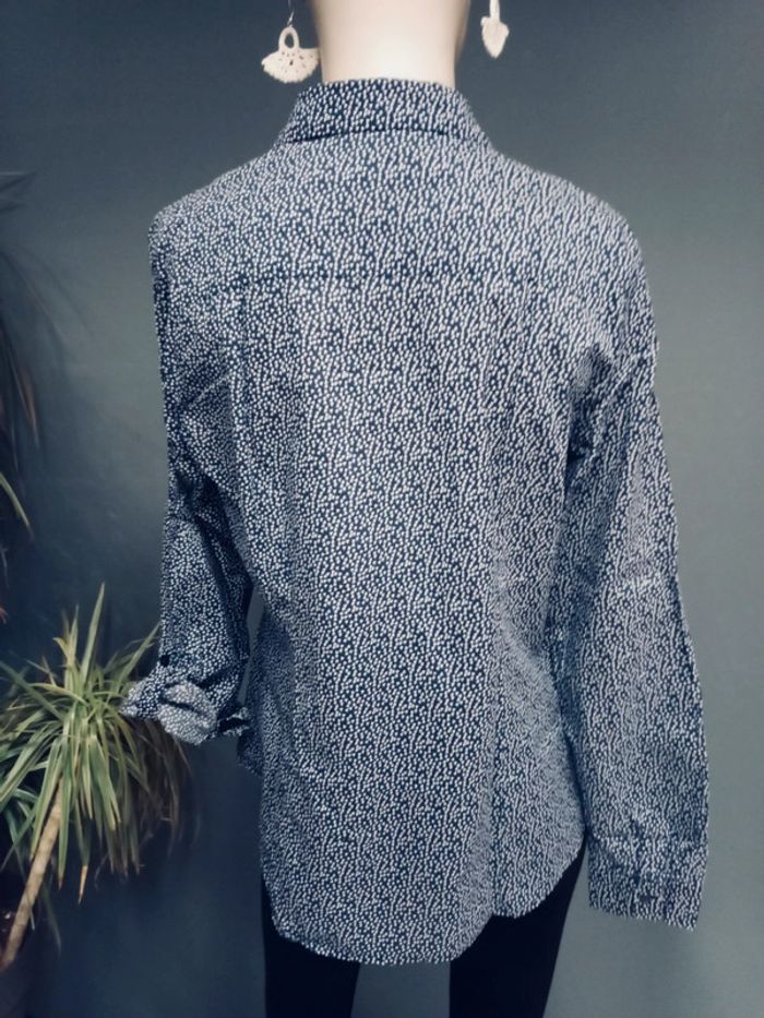 Basique et originale avec ses petits triangles Manches longues retroussables Étiquette taille et composition coupée