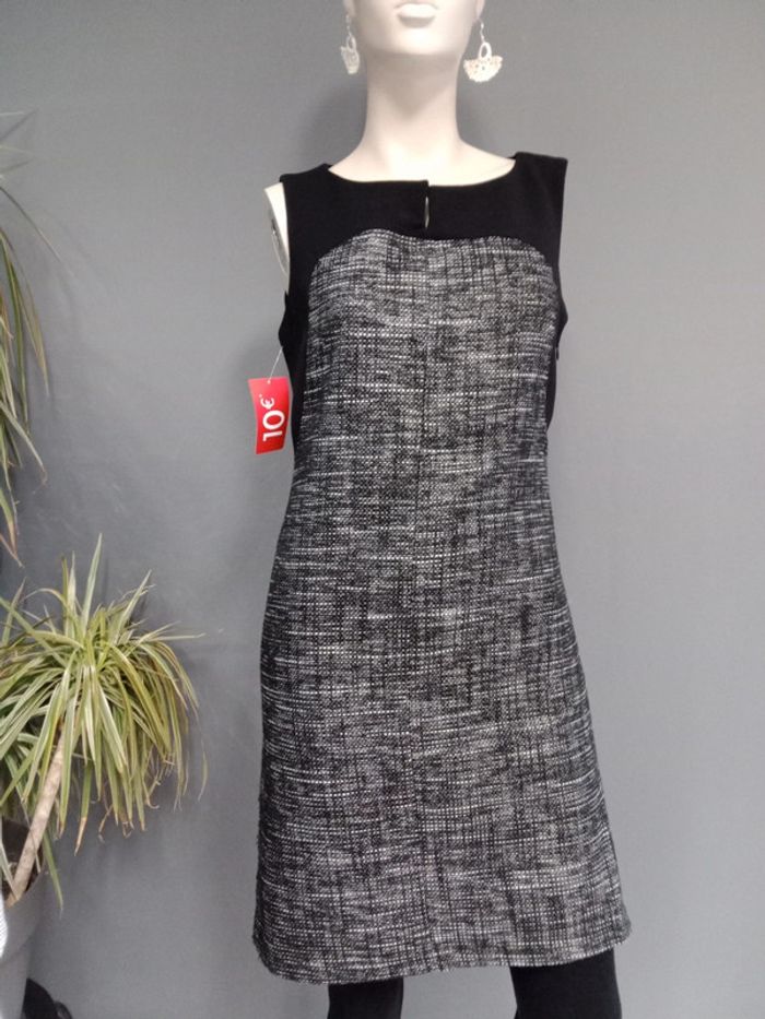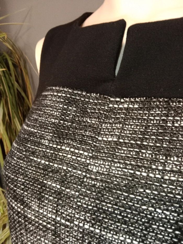 Bi matière Chiné noir, blanc et argenté Belle coupe et matière Fermeture éclaire sur côté