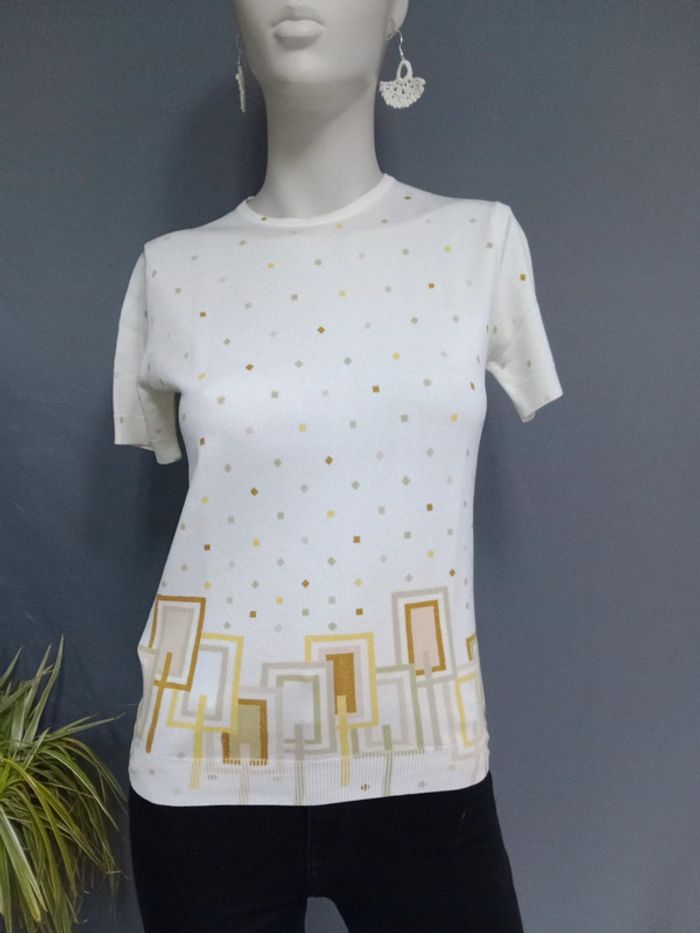 Pas d'étiquette de taille et de composition Fermeture éclaire nuque Manches courtes #vintage #vintagestyle #pullvintage