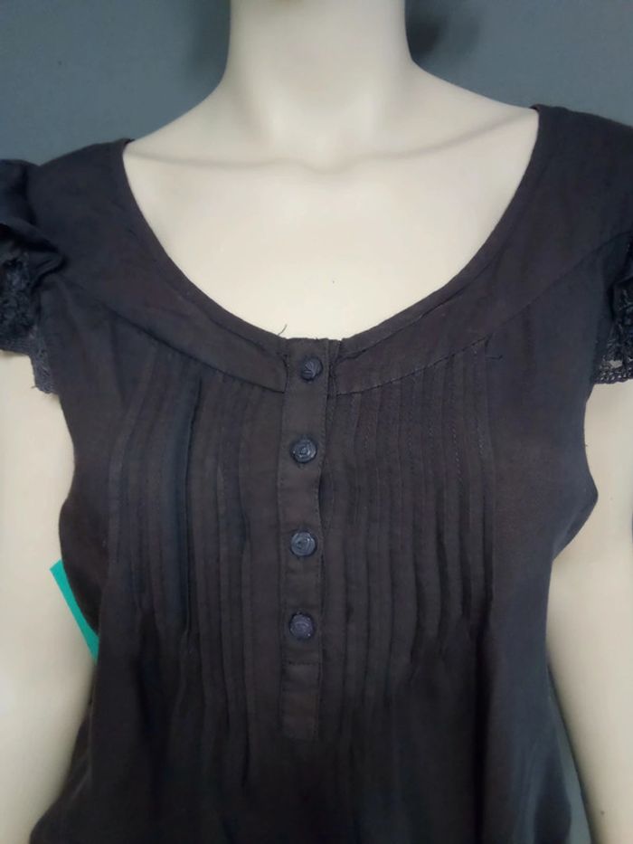Doublée sur partie basse Dentelle en bas et manche Cordon pour resserrer à la taille Boutons sur poitrine